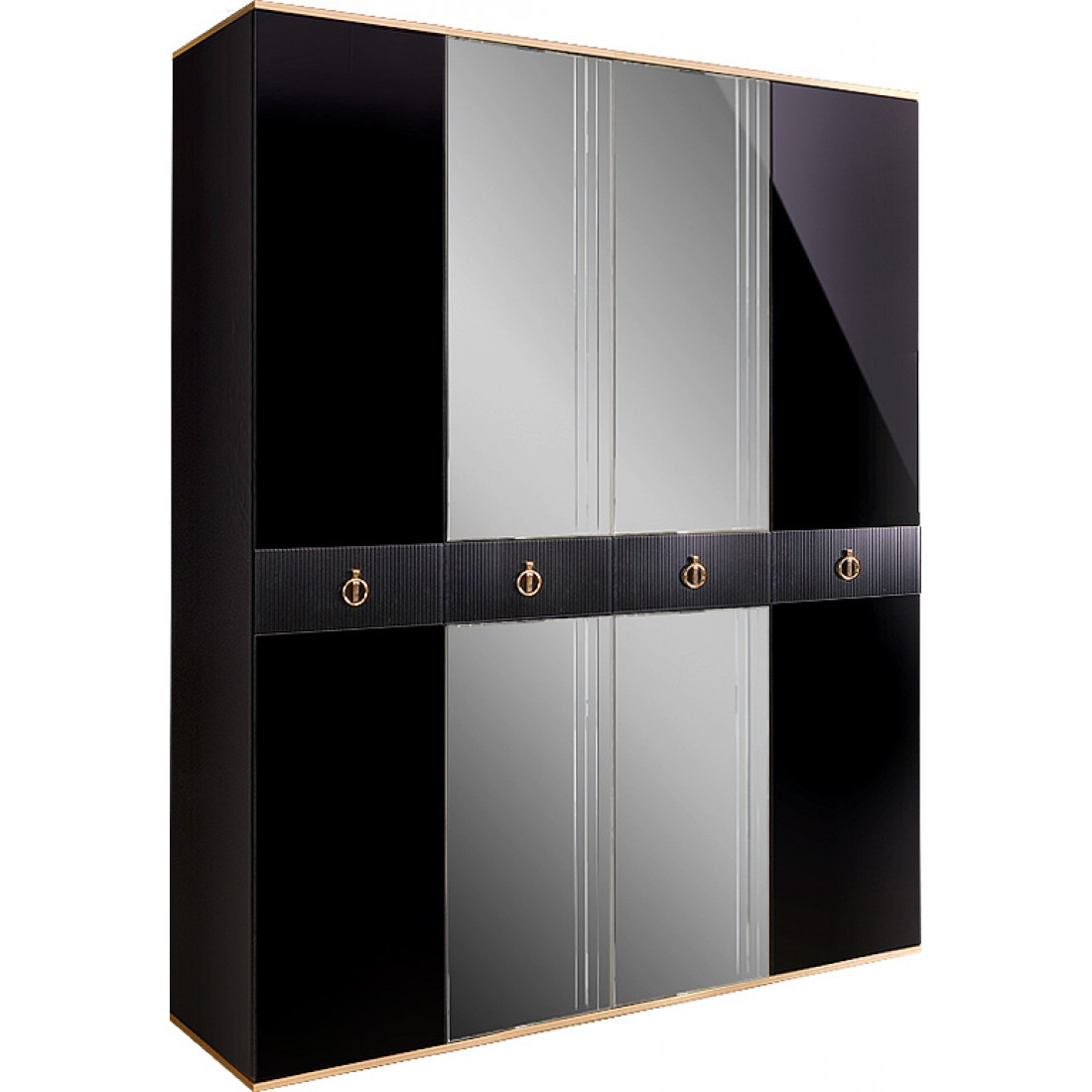 Четырехстворчатый шкаф для одежды с зеркалом Rimini Solo РМШ1/4 (s) (черный)