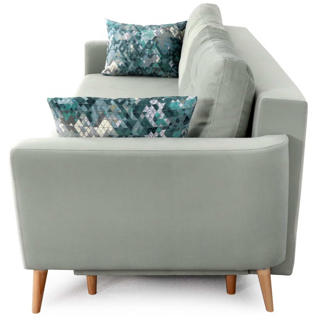 Благодаря тому, что основание модели приподнято над полом, диван не выглядит «тяжелым». Напротив, конструкция добавляет «воздуха» в интерьер. Опоры дивана изготовлены из натурального дерева (береза).