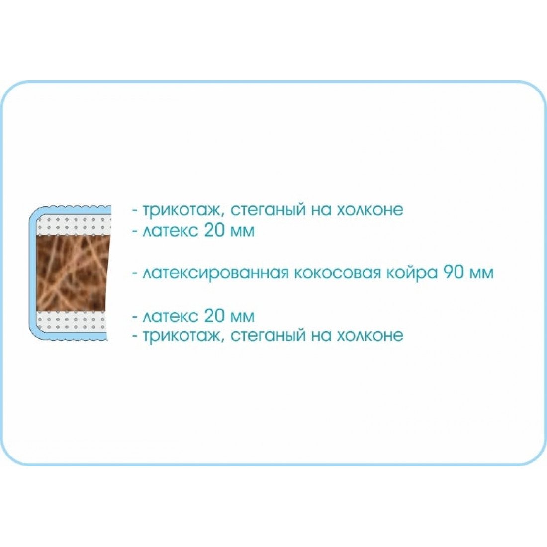 Наполнение: кокосовая плита 90 мм, латекс 20 мм с двух сторон.