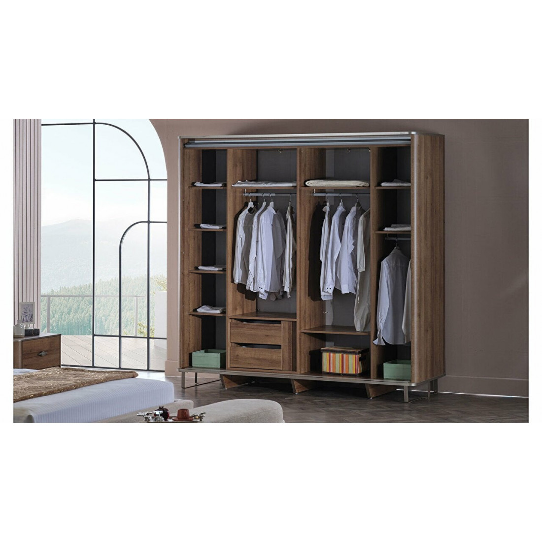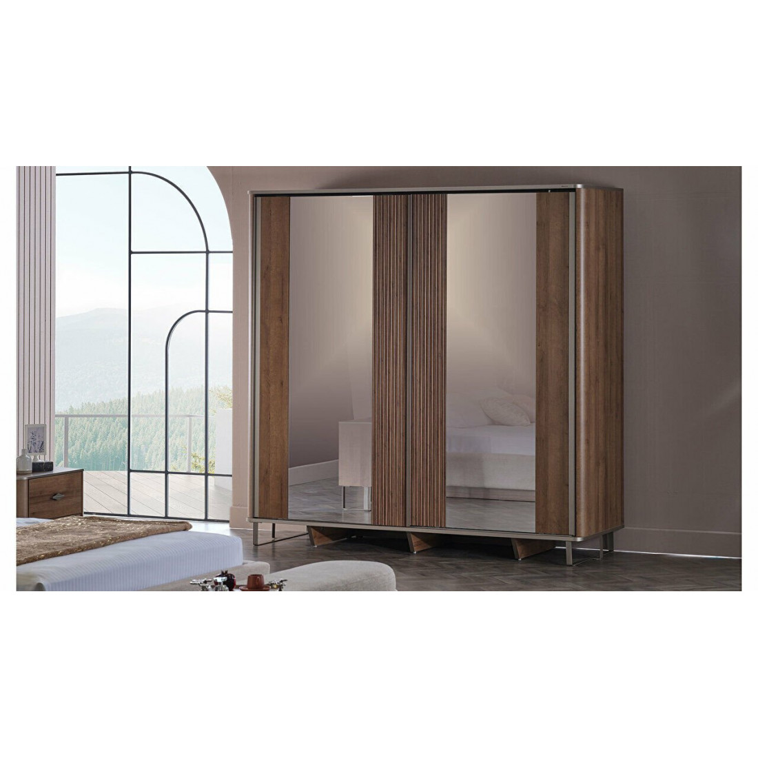 Четырехстворчатый шкаф для одежды Римини MUR-118-04 с зеркалом