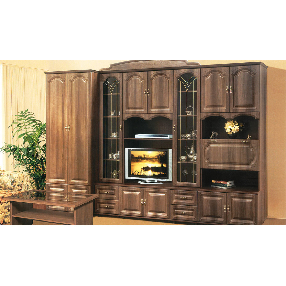 Стенка для гостиной Романтика ВК-09.1, цветовое исполнение орех темный.
