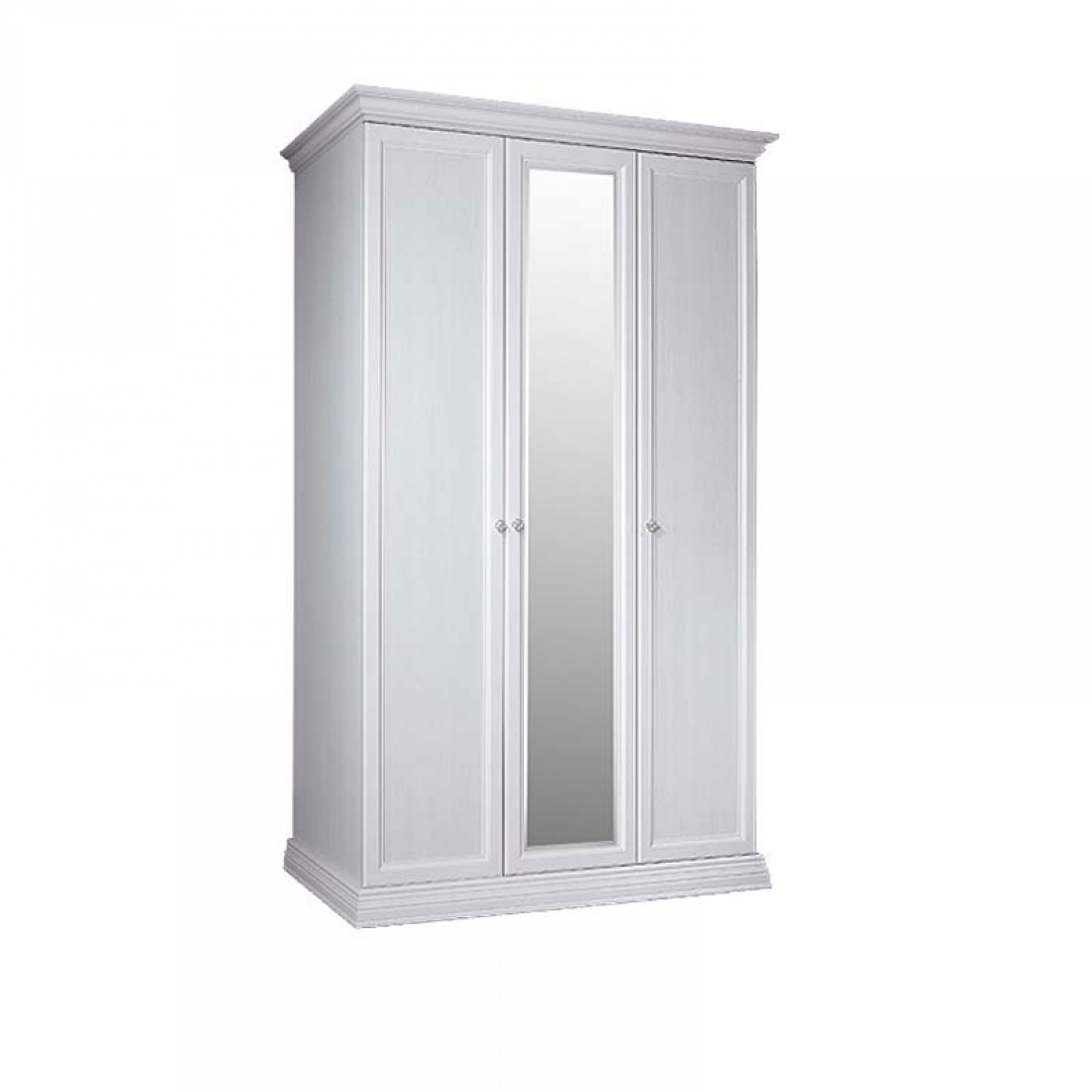 Трехдверный шкаф с зеркалом для платья и белья АМШ1/3 изготовлен из ламинированной плиты Эггер (Австрия), а также плиты совместного итальянско-российского производства «Карелия ДСП», являющегося лучшим в России производителем мебельных плит, и покрыт итальянским лаком превосходного качества.